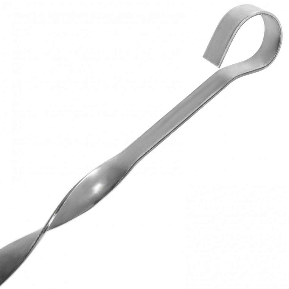 Шампур изготовлен из упругой нержавеющей стали толщиной 1,5 мм, поэтому прослужит долго и не погнется под тяжестью мяса.
