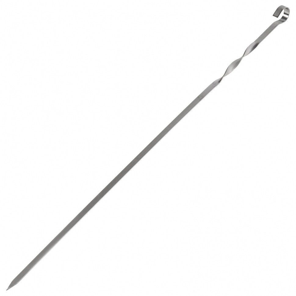 Шампур изготовлен из упругой нержавеющей стали толщиной 1,5 мм, поэтому прослужит долго и не погнется под тяжестью мяса.