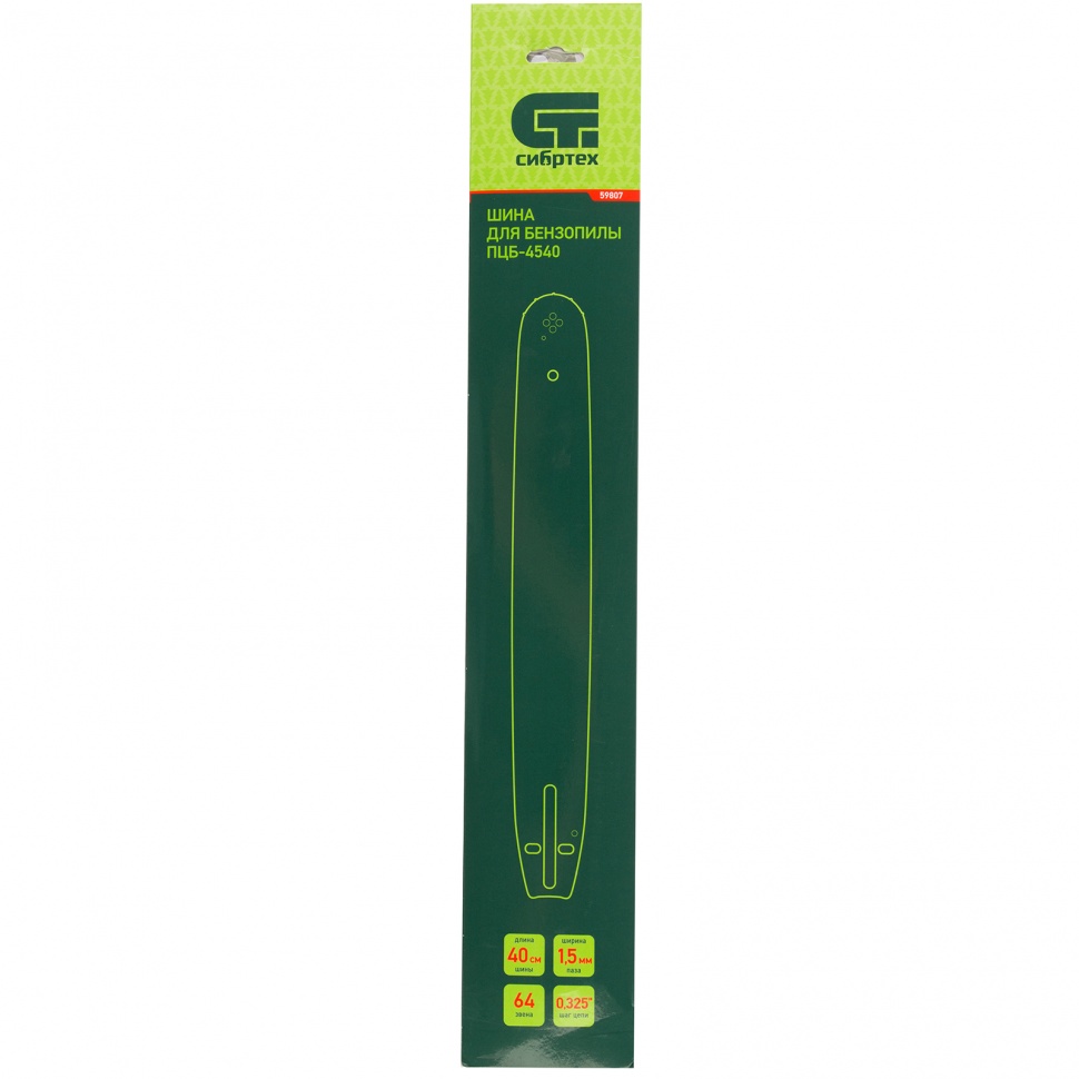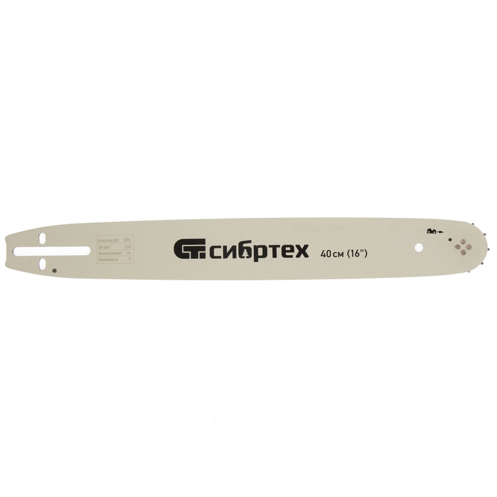 Пильная шина Сибртех 59807 используется в качестве сменной фурнитуры с цепной бензиновой пилой Сибртех ПЦБ-4540. Обладает оптимальными характеристиками для работ на участке, в походах, на охоте и рыбалке - длиной 40 см и шагом 0,325".