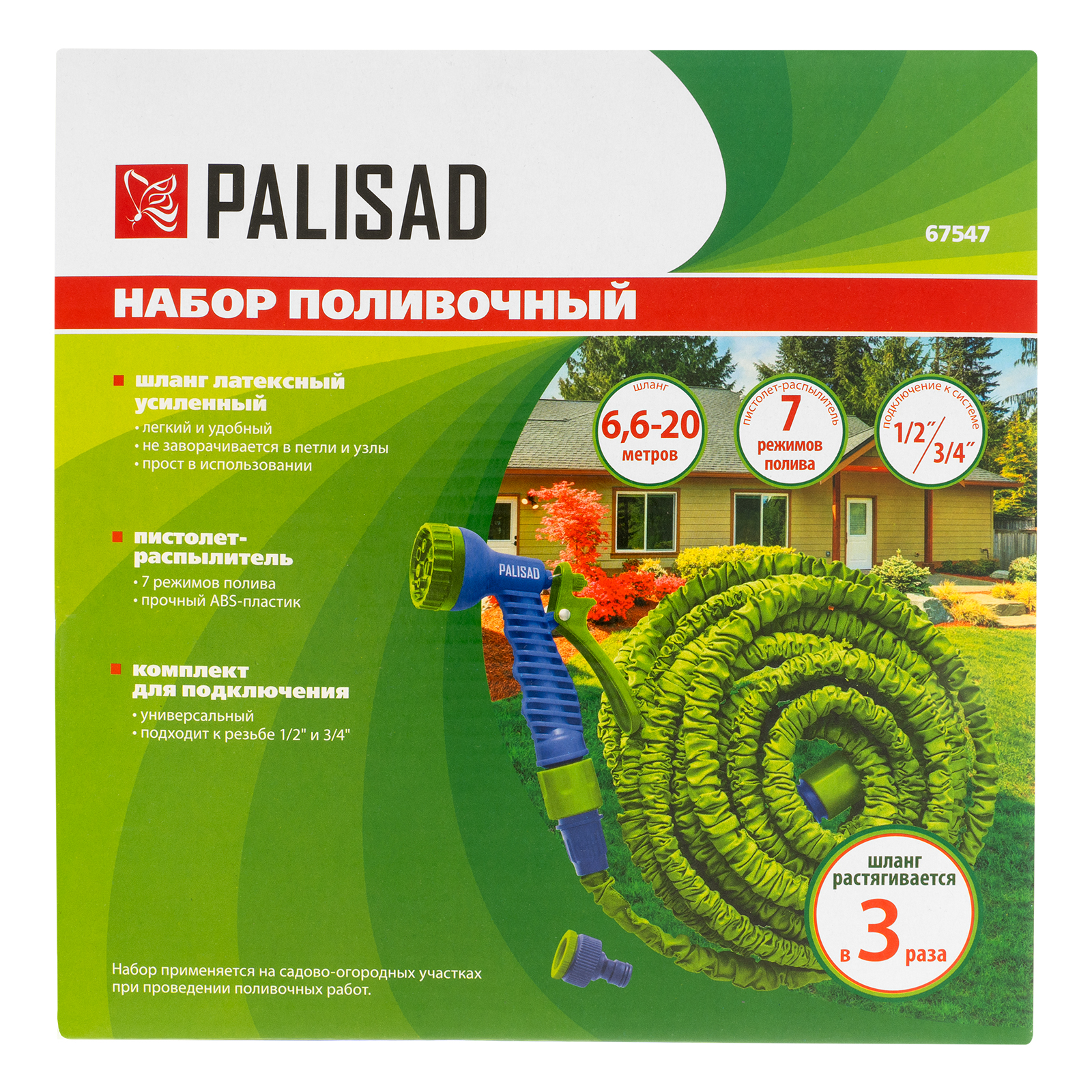 Набор поливочный, усиленый растягивающийся шланг 20 м, 7 режимов пистолет, соединитель, адаптер Palisad