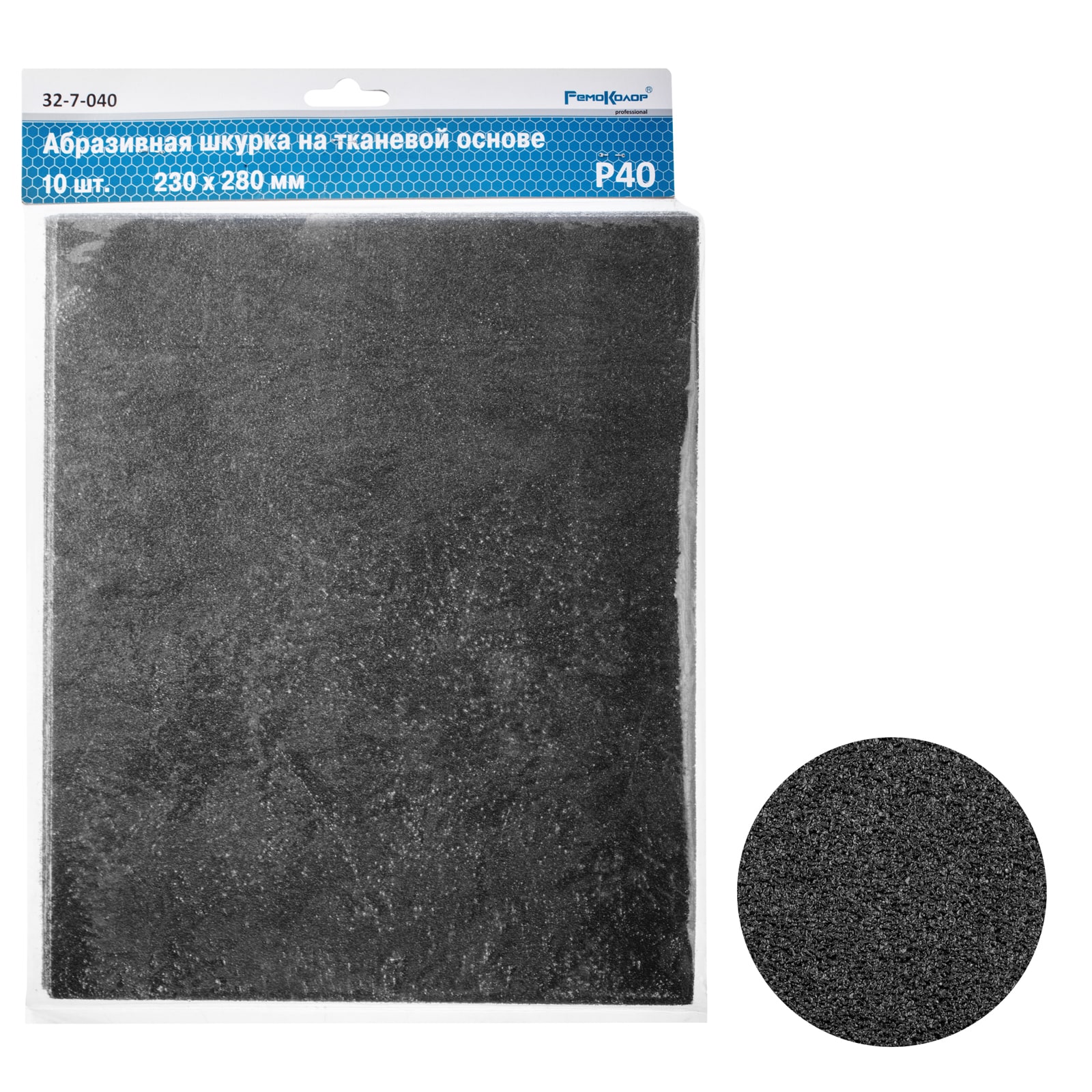 Шлифовальный лист на тканевой основе, водостойкий, оксид алюминия, Р40, 230х280мм 10шт., (уп.)