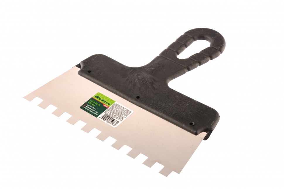 Шпатель из нержавеющей стали, 200 мм, зуб 10 х 10 мм, пластмассовая ручка Сибртех