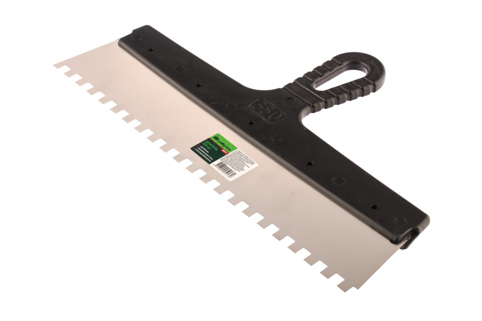 Шпатель Сибртех 85477 шириной 350 мм, из нержавеющей стали, с пластмассовой ручкой и зубьями 8 х 8 мм, применяется для равномерного нанесения клея при укладке мелкоформатной плитки, мозаики и т.д. Квадратные зубья облегчают нанесение клеевого состава, позволяя ровно и экономно распределять его по поверхности. Зубья размером 8 х 8 мм рассчитаны на плитку площадью 400-900 см2.