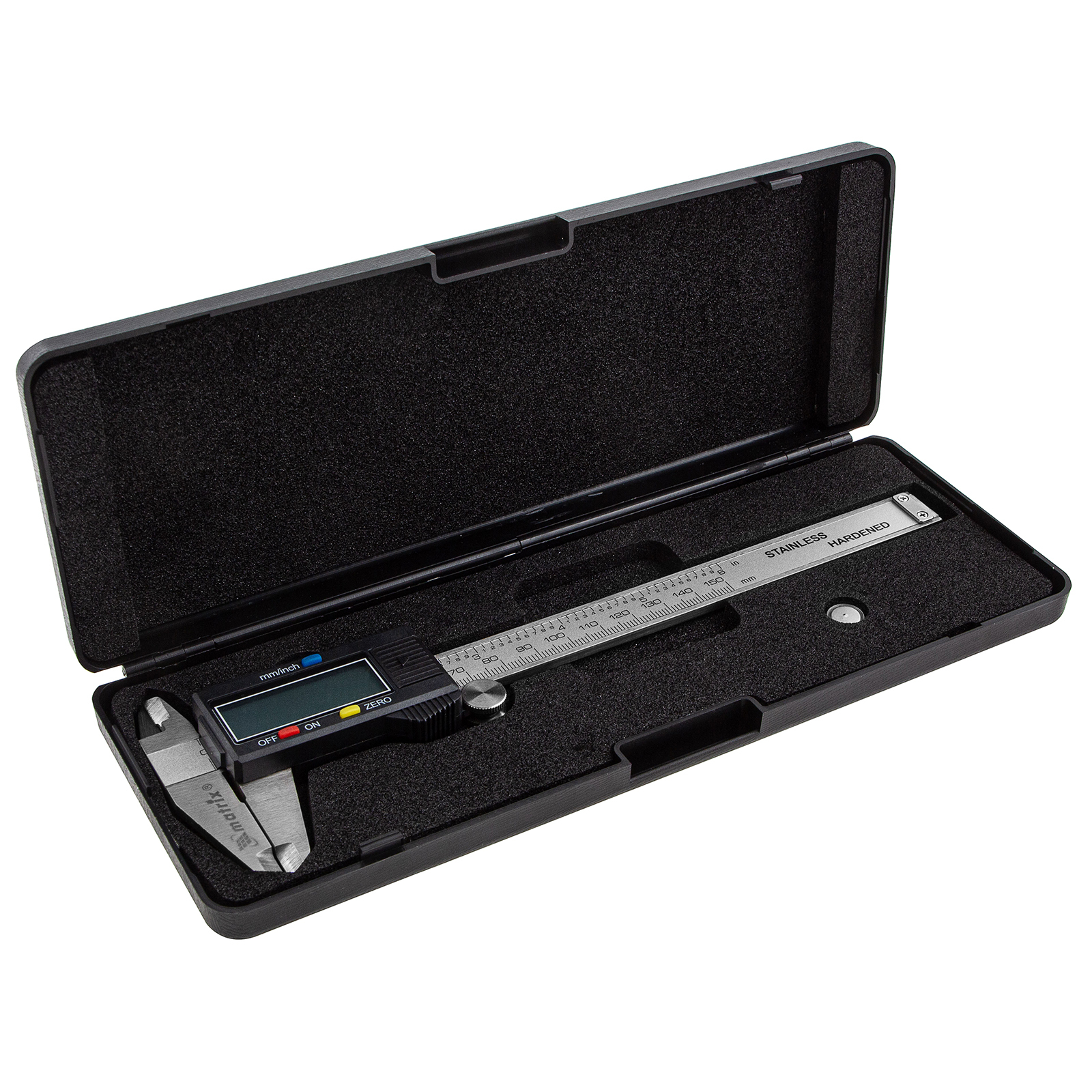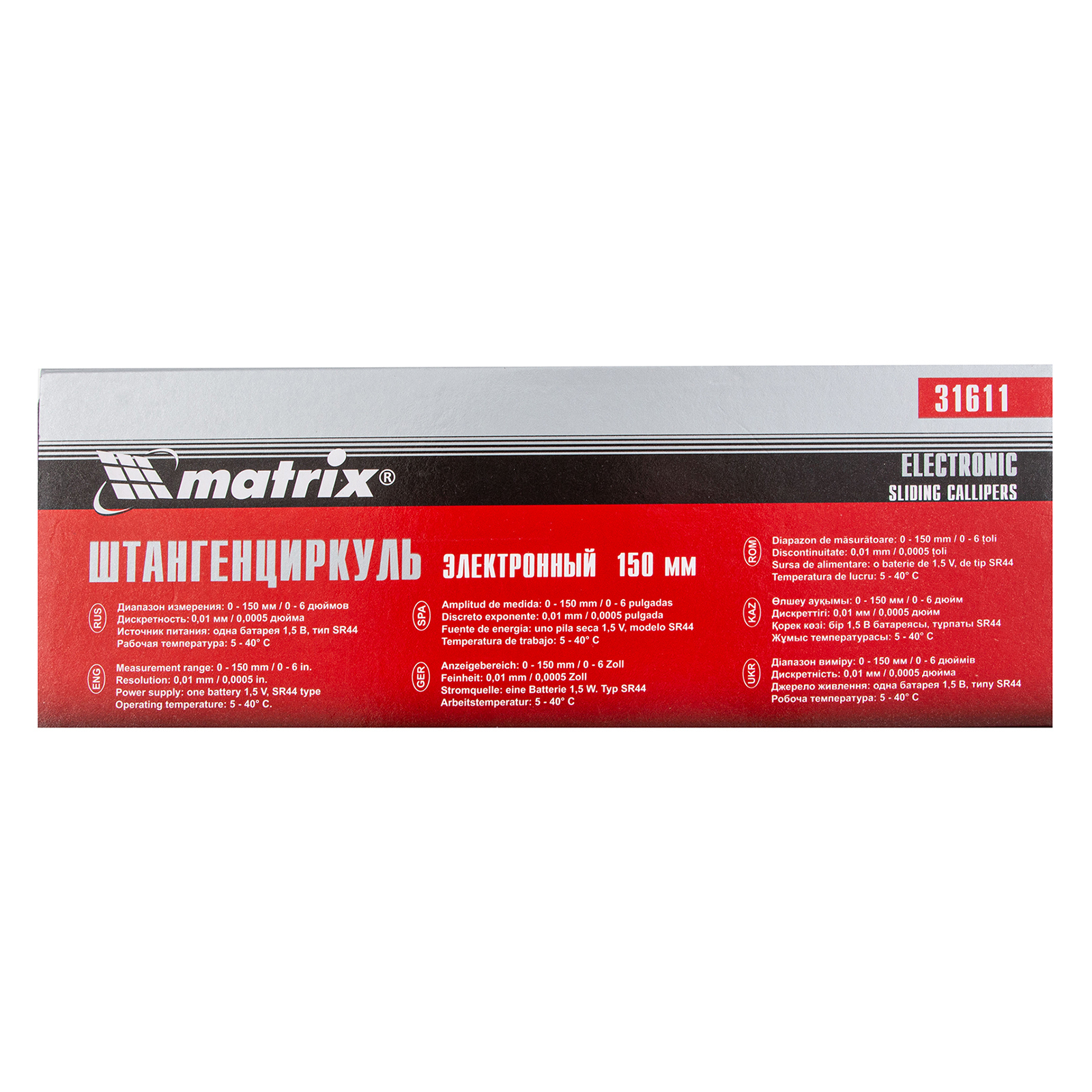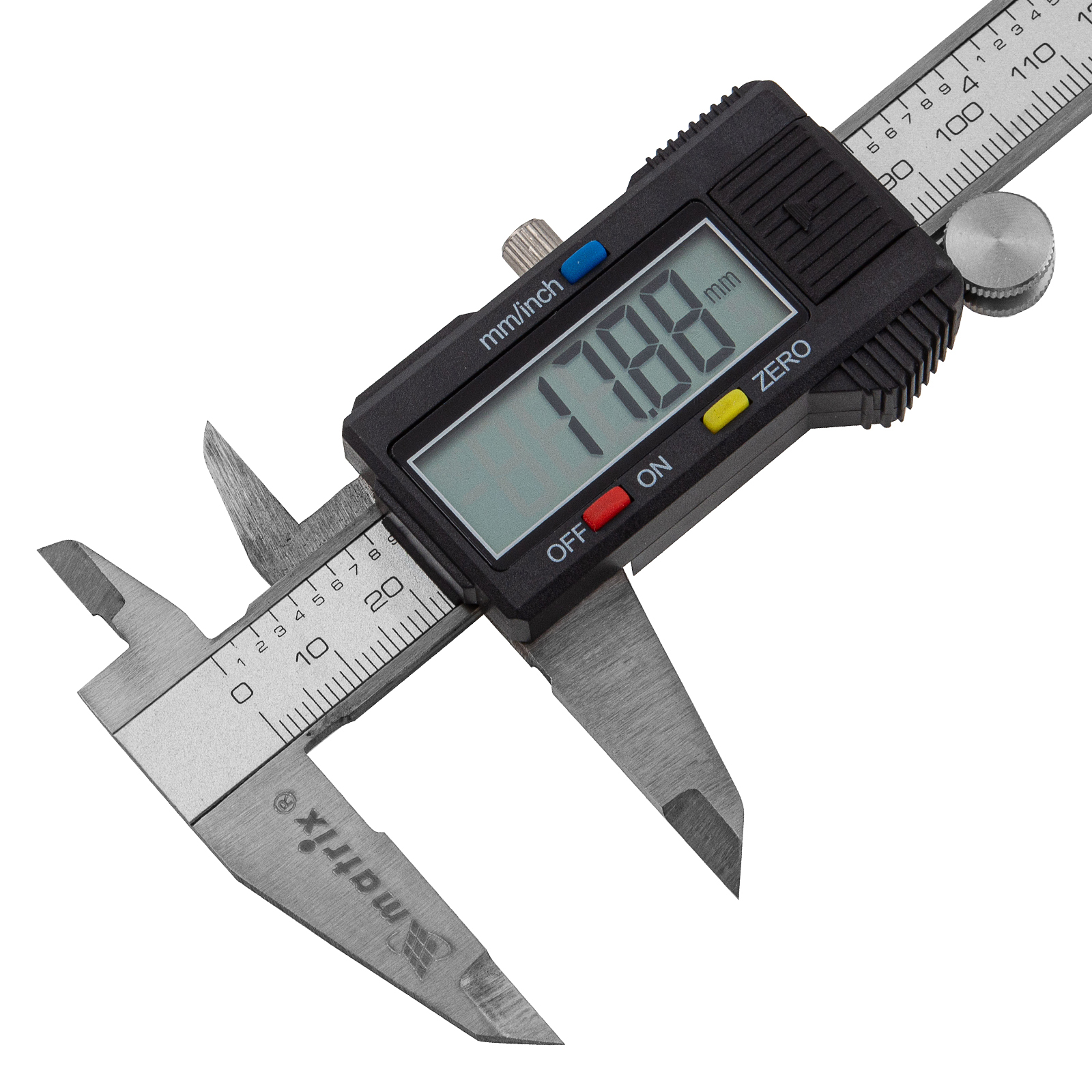 Электронный штангенциркуль Matrix 31611 со шкалой 150 мм предназначен для определения внутренних и наружных размеров различных предметов, а также глубин отверстий и канавок. Цифровой инструмент позволяет проводить точные замеры, т.к. его погрешность составляет ±0,02 мм при измерении размеров до 100 мм, и ±0,03 мм — свыше 100 мм. Результаты отображаются на жидкокристаллическом дисплее, поэтому считывание показаний происходит легко и быстро. Штангенциркуль пригодится на производстве, в слесарной или столярной мастерской, а также дома или в гараже.