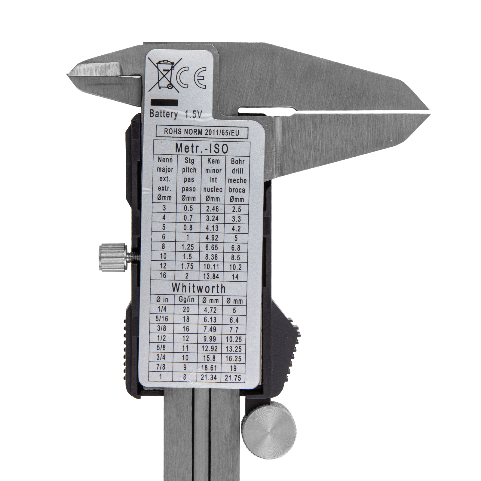 Батарею типа SR44 1,5 В, от которой питается инструмент, легко заменить, и штангенциркуль с глубиномером снова будет готов к работе.