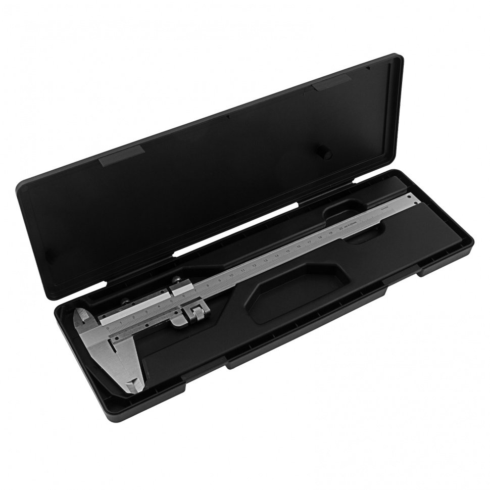 Удобное хранение и транспортировка — штангенциркуль упакован в прочный пластиковый кейс.