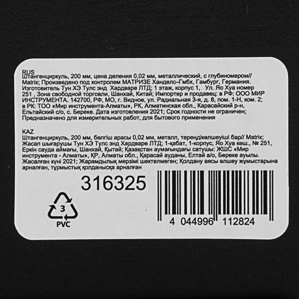 Металлический штангенциркуль с глубиномером Matrix 316325, 200 мм, со значением отсчета по нониусу 0,02 мм, используется для быстрого определения размеров внутри и снаружи деталей, а также глубин отверстий и канавок — для этого предусмотрен глубиномер. Погрешность составляет ±0,02 мм при измерении размеров до 100 мм, и ±0,03 мм — свыше 100 мм. Измерительный инструмент используется в токарном, слесарном деле, будет полезен на производственном предприятии, а также дома или в гараже.