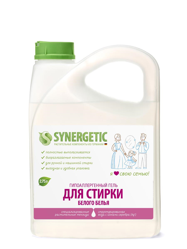 Гель для стирки белого белья Synergetic, гипоаллергенный, 2,75 л