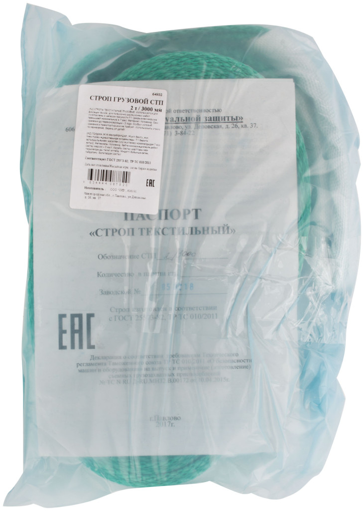Строп грузовой текстильный СТП 2 т / 3 м ( запас прочности 7:1 ; р/н= 14 т )