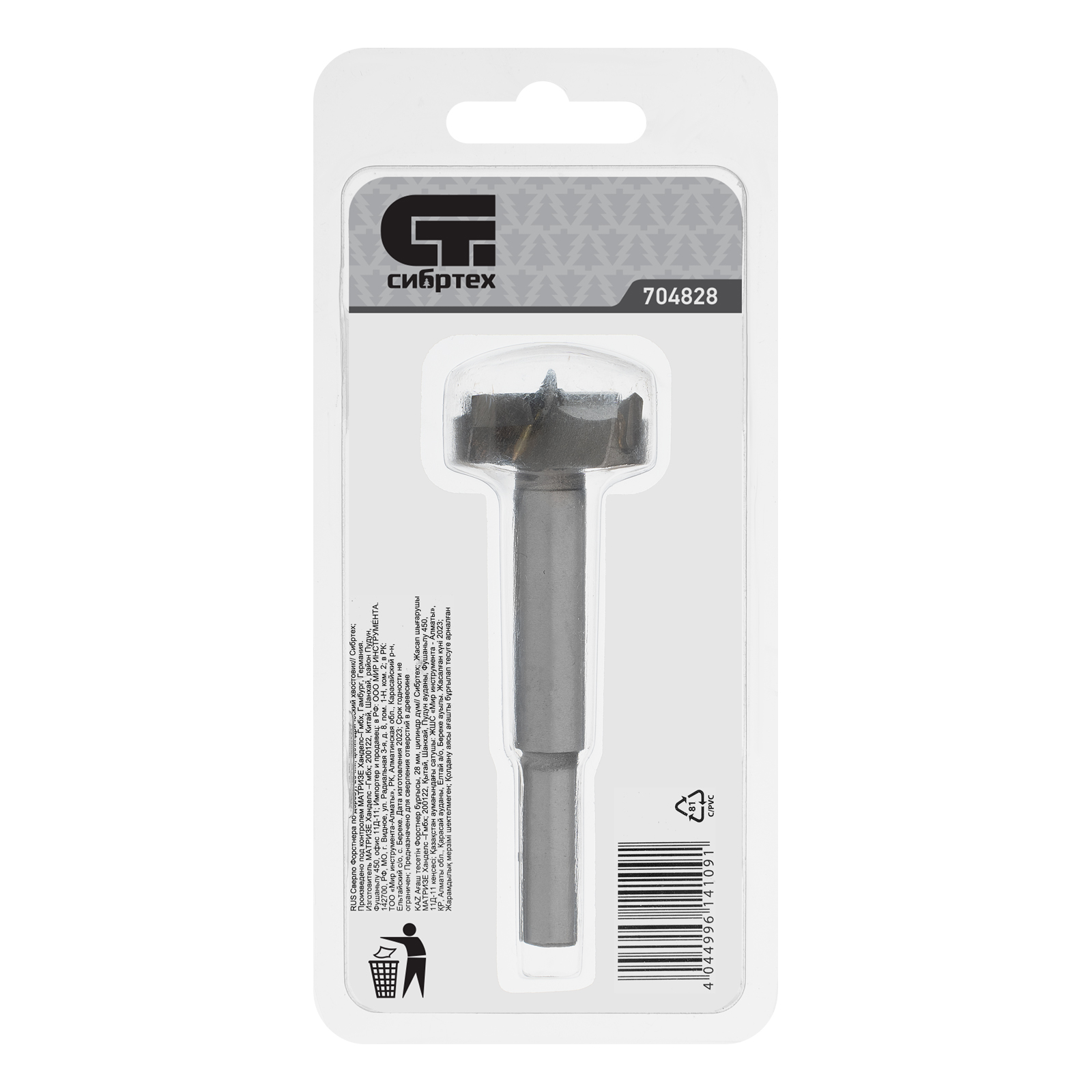 Сверло Форстнера по дереву, 28 мм, цилиндрический хвостовик Сибртех