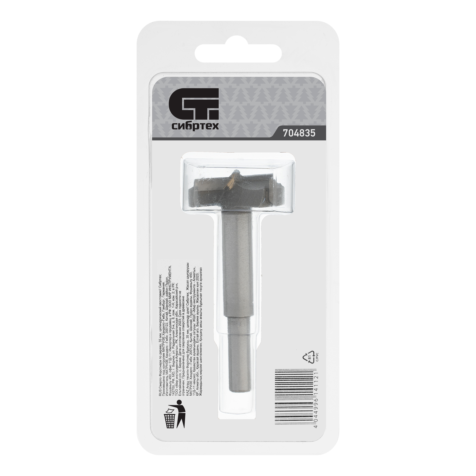 Сверло Форстнера по дереву, 35 мм, цилиндрический хвостовик Сибртех