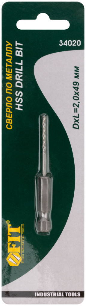Сверло hss по металлу,полированное, u-хвостовик под биту, инд.упаковка 2,0 мм