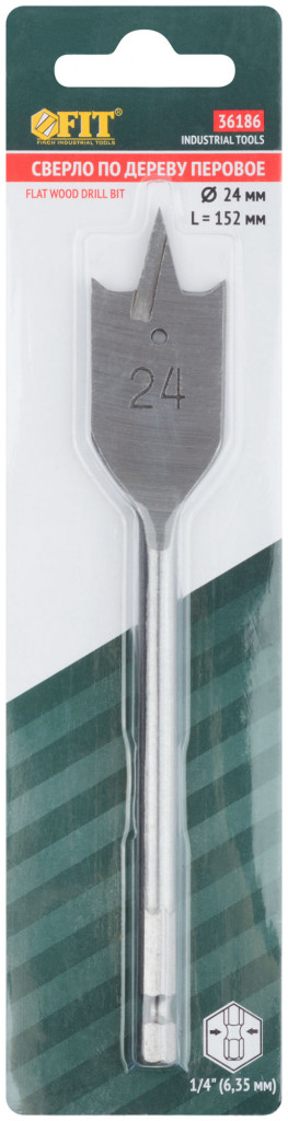 FIT 36186 Сверло по дереву перовое U-образный хвостовик под биту 24 х 152 мм---