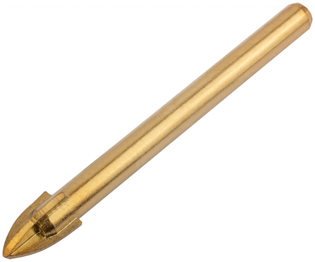 Четыре режущие кромки. Для сверления отверстий в стекле, кафельной плитке. Повышенная производительность. Материал: инструментальная сталь с титановым покрытием, твердосплавные вставки. Упаковка: блистер.