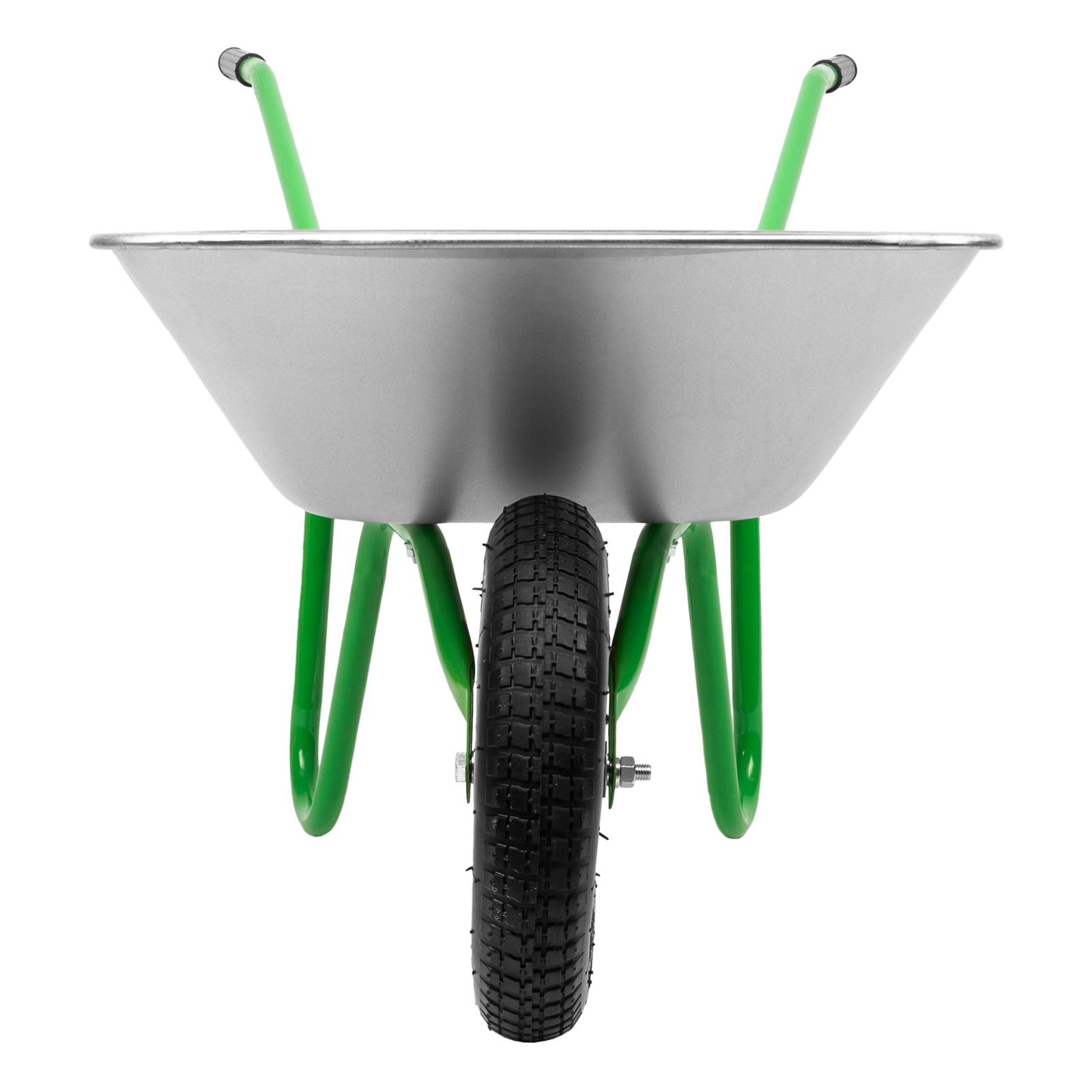 Садовая тачка Сибртех 689616 грузоподъемностью 90 кг, с кузовом объемом 65 л, используется для проведения работ на загородном участке. Рама изготовлена из трубы диаметром 25 мм с толщиной стенок 1 мм, что обеспечивает оптимальный баланс грузоподъемности и веса изделия. Тачка удобна для перемещения веток, листвы, мусора во время уборки в саду и огороде.