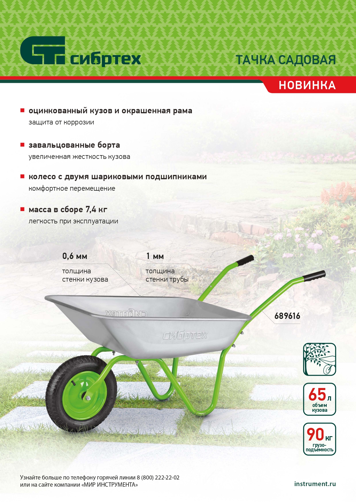 Тачка, садовая, грузоподъемность 90 кг, объем 65 л// Сибртех Новинка