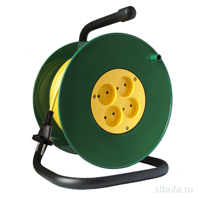 Удлинитель силовой на пластиковой катушке ТМ Союз с 4 гнезда без заземляющих контактов ПВС 2*1 50 метров