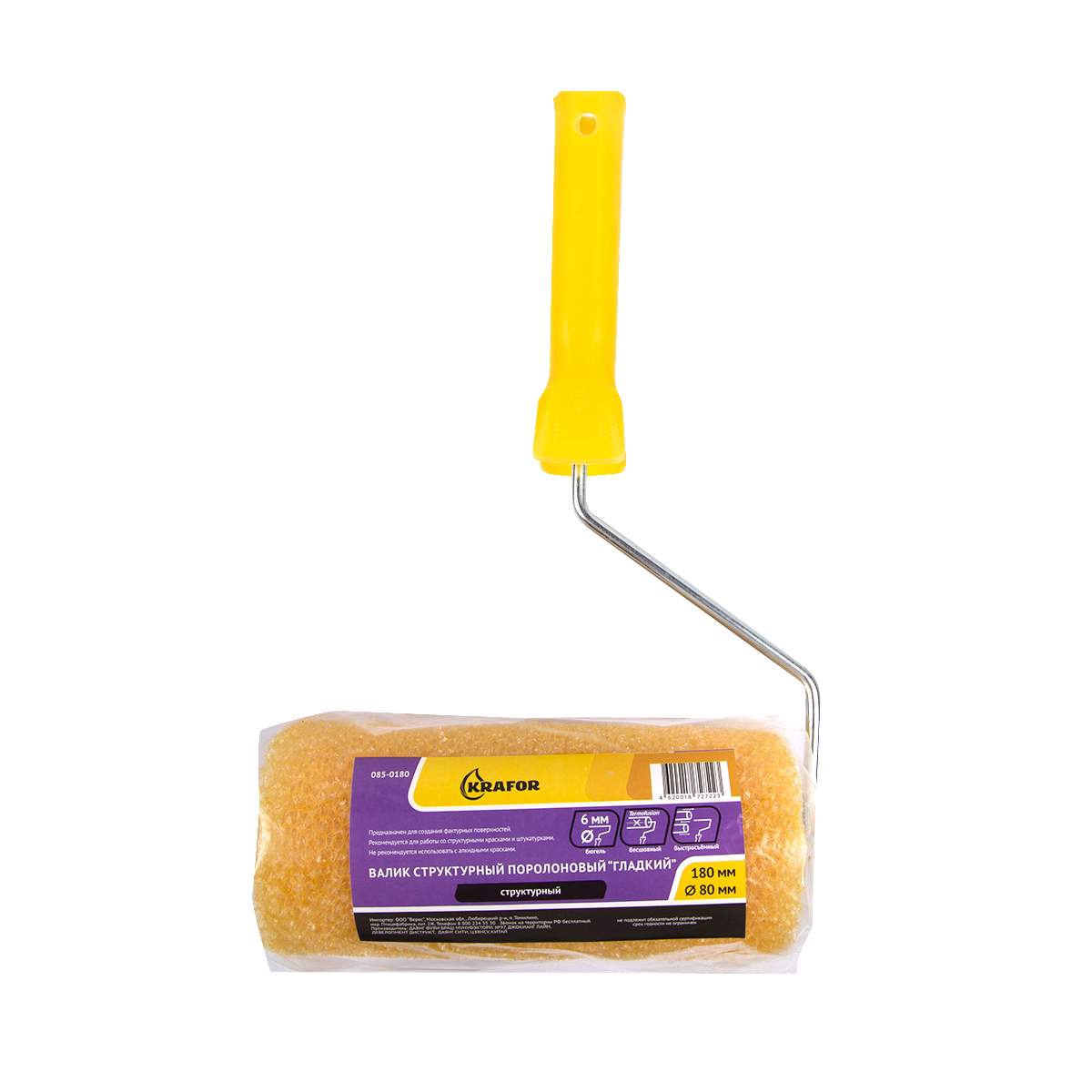 Валик структурный поролоновый Krafor Гладкий D80 х 180 мм, бюгель 6 мм (в сборе)
