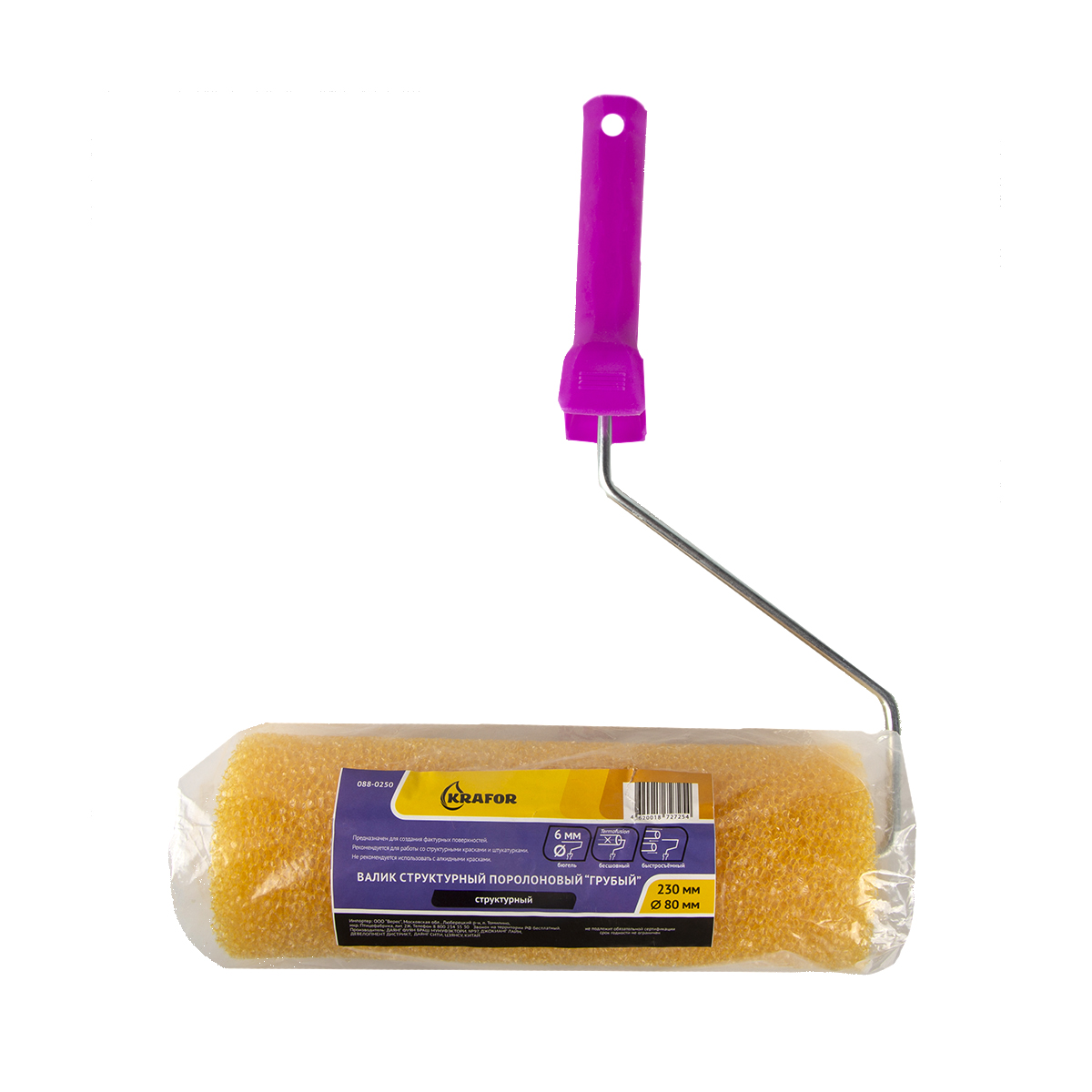 Структурный или по-другому фактурный валик, шубка которого изготовлена из эластичного полиуретана (поролона). Имеет грубую структуру. Ширина ролика 230 мм, диаметр 80 мм. Ворса такой валик не имеет.