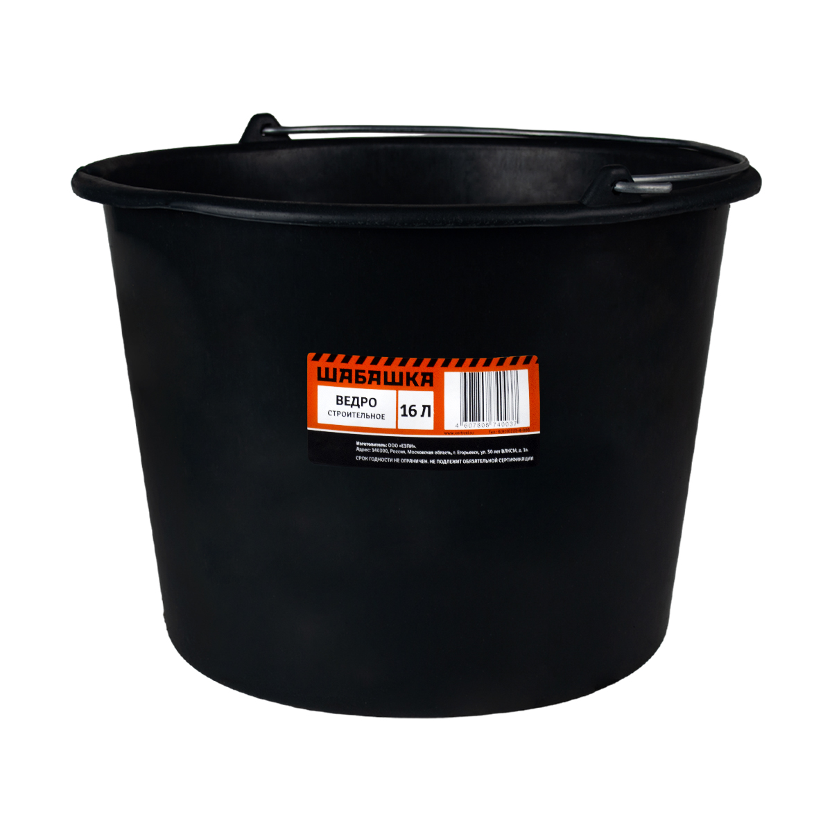 Строительное ведро объемом 16 литров изготовлено из прочного пластика.