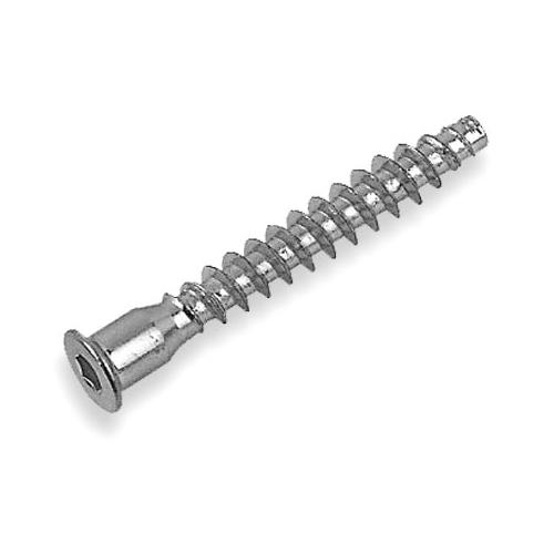 Винт-конфирмат с внутренним шестигранником, с отверстием под заглушку. Имеет однозаходную, редкую, неполную резьбу.