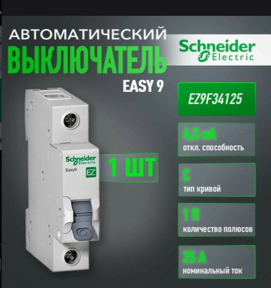 Автоматический выключатель Schneider Electric 1П 25А EZ9F34125 (АКЦИЯ)